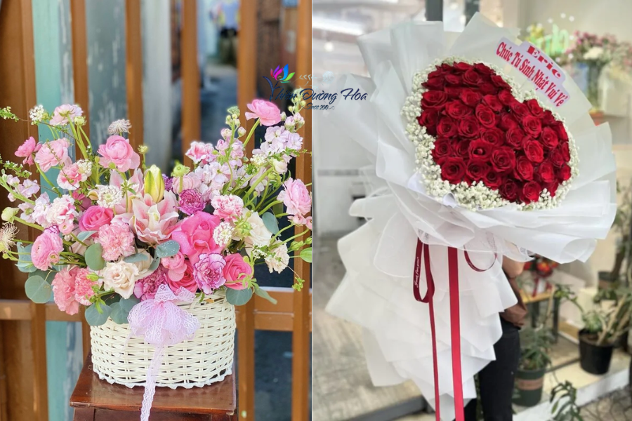 Tùy chọn loại hoa: Tự do kết hợp các loại hoa yêu thích từ hoa hồng, hoa hướng dương đến những dòng hoa nhập khẩu cao cấp.